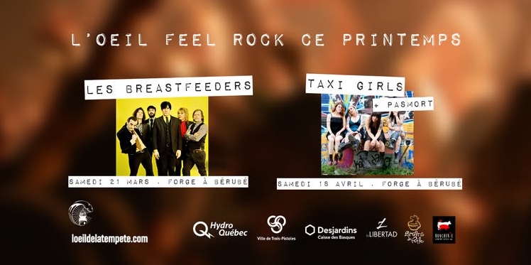 Un combo avec un show rock'n'roll-garage-yéyé un peu des fois avec Les Breastfeeders le samedi 21 mars, et un show assumé bon vieux punk rock avec un de nos gros coups de cœur de ces dernières années, les filles de Taxi Girls. Ça se peut que vous connaissiez pas encore Taxi Girls. Faites nous confiance là-dessus. C'EST TRÈS BON.